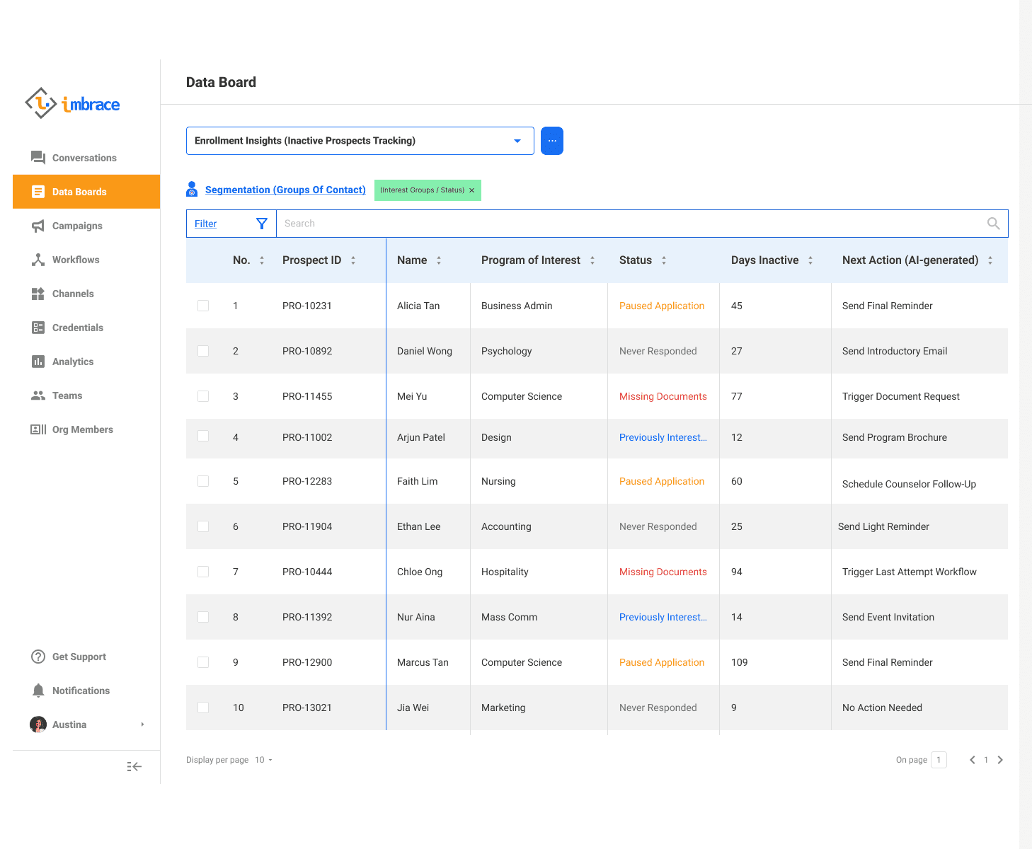 Universities run thousands of micro-processes daily — from research logs to student inquiries — yet most of that data stays scattered and unused. iMBrace connects these silos into a single intelligent system, turning unstructured information into governed insights that empower smarter decisions and student success.