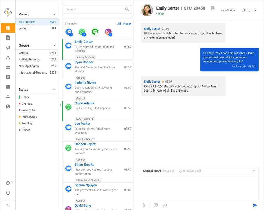 Student messages scattered across channels delay responses and reduce satisfaction.