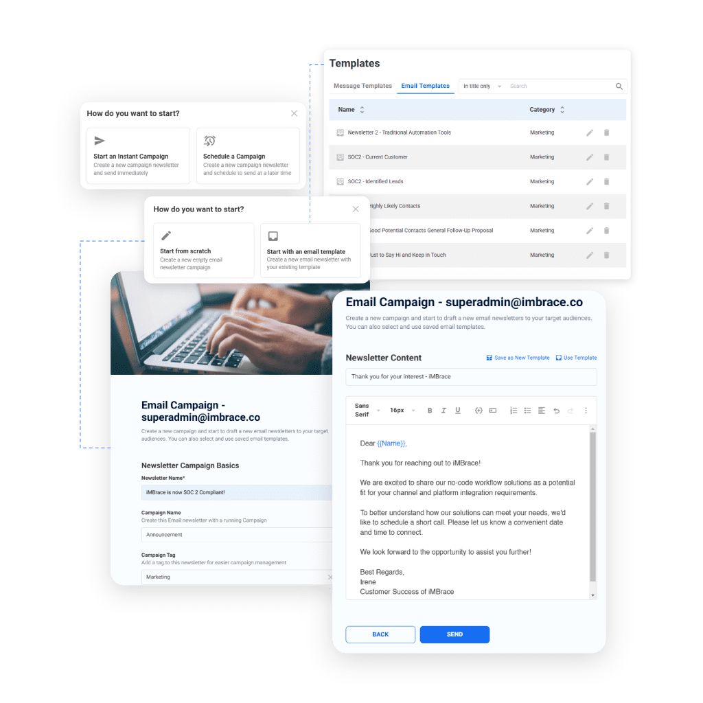 Automate your email outreach, deliver personalized messages, and track performance metrics. With iMBrace’s Email Campaign, boost engagement and drive sales effortlessly.