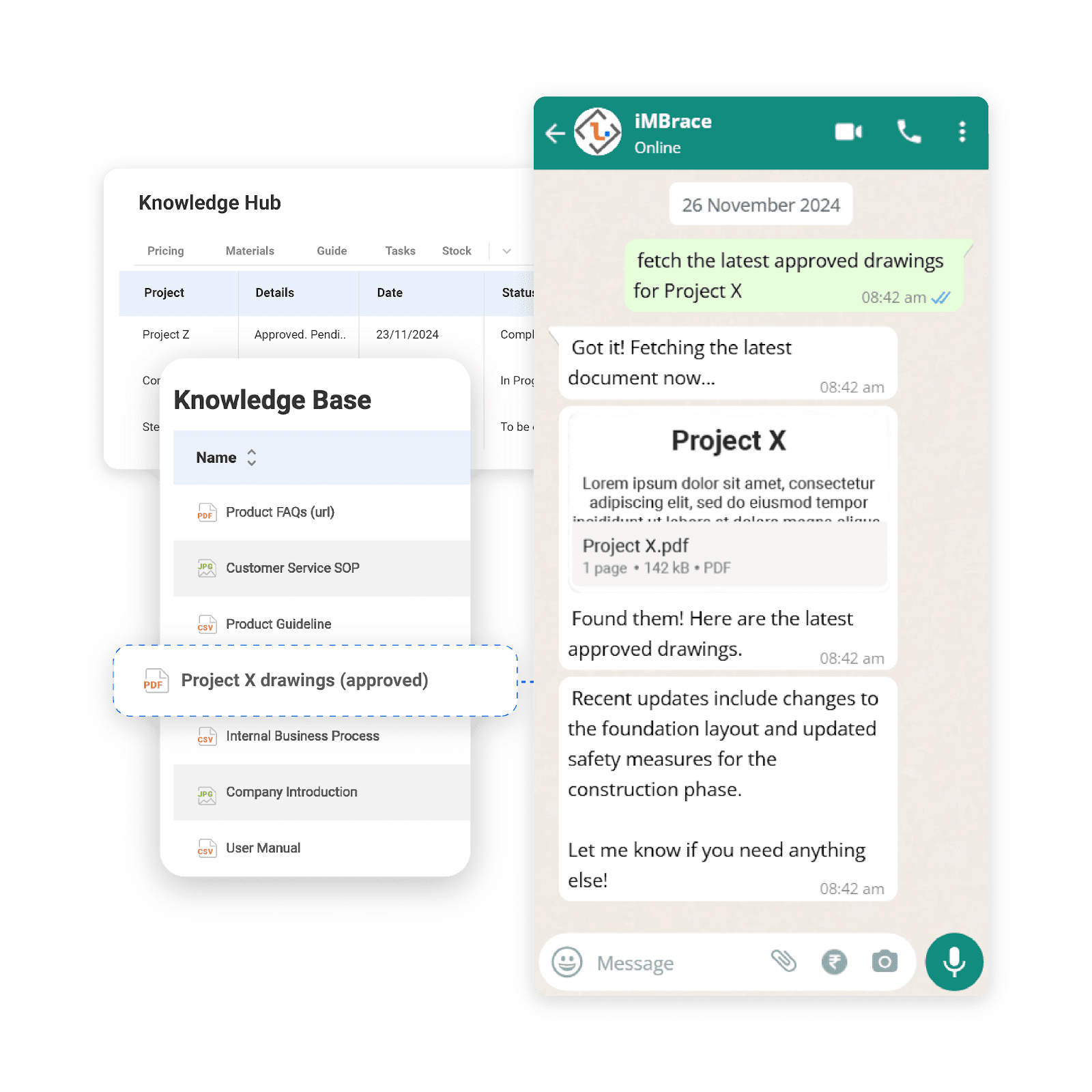 Finding past decisions or records across multiple systems is time-consuming. iMBrace AI searches tools like Slack, Jira, and Confluence to retrieve relevant historical context instantly, preventing rework and enabling quicker problem resolution.