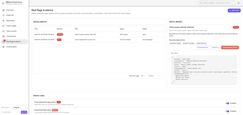 Furthermore, every interaction within iMBrace is recorded via “Immutable Audit” logs. These encrypted records provide total transparency, allowing a Chief Information Security Officer (CISO) to reconstruct exactly why an agent took a specific action. This level of traceability is a core requirement for SOC 2 compliance and is fundamentally absent in open-source frameworks like OpenClaw, where logs are often stored as local, mutable Markdown files.