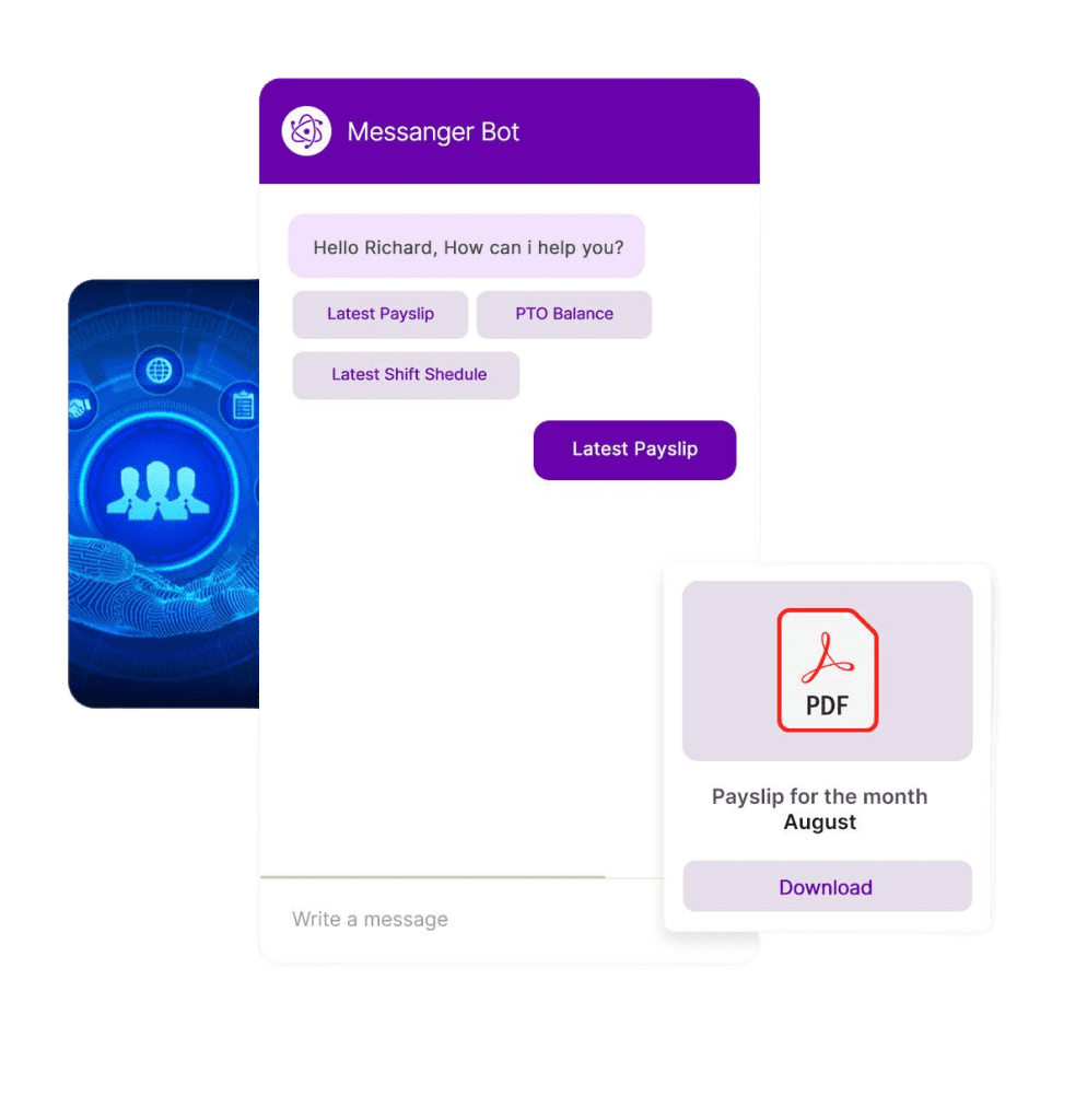 Answers common questions about leave, benefits, policies, and procedures. Reduces HR workload, improves employee self-service, and enhances staff satisfaction.